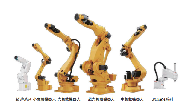 该公司提供3kg到1000kg负载的共96款工业机器人产品,覆盖全型谱通用机器人以及行业专用机器人,满足从轻量到重载,从高速到高精度的市场需求。